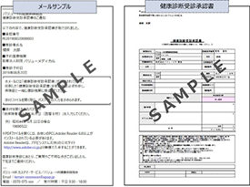 「健診予約システム」より、予約が完了すると、指定のメールアドレス宛てに「人間ドック・脳ドック受診承認書」pdfが送られます。申込内容に相違がないかご確認ください。(予約依頼中は配信されません)